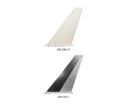 Lightweight, high strength and high reliability design for use on commercial air transports and business turbojet aircraft. The antennas provide maximum protection against P-Static. The EDO DM-C50-1 through the DM C50-11/A provide a replaceable leading edge for repair. Stainless steel leading edges available. The DM C50-17, DM C50-17/A, DM C50-18, DM C50-19, CM C50-20 provide second generation design improvements for further drag reduction and P-Static reduction. Anti-icing option available.