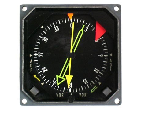 * Radio Magnetic Indicator providing aircraft heading information on a calibrated, servo-driven compass card read against a fixed lubber line