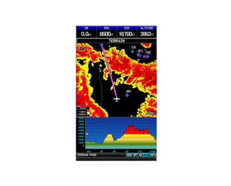 The GPSMAP 695 features a high-resolution terrain page showing hazards relative to your altitude and a vertical profile of terrain along your route of flight. It comes with a built-in Jeppesen database, and an Americas, Atlantic or Pacific terrain database. It also includes an obstacles database for the U.S. or Europe. Using this information, the 695 displays your flight route over contour terrain mapping. With information from the terrain and obstacles databases, the 695 monitors your current position in relation to surrounding terrain to provide alerts. You can even customize your own minimum clearance levels to receive terrain cautions. The 695 also comes with a realistic “view from space” satellite imagery basemap.