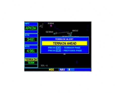 GNS 500W seamlessly integrates built-in terrain and navigation databases, providing a clear, concise picture of where you are and where you’re heading. The 500W's huge Jeppesen® database, updated with front-loading data cards, contains location reference for all airports, VORs, NDBs, Intersections, Flight Service Stations, published approaches, SIDs/STARs, Special Use Airspace and geopolitical boundaries. A detailed basemap clearly shows airports, cities, highways, railroads, rivers, lakes, coastlines and more. Using information from the built-in terrain and U.S. obstacles databases, the 500W displays color coding to graphically alert you when proximity conflicts loom ahead. In addition, you can augment GNS 500W with optional Class-B Terrain Awareness and Warning System (TAWS) for an extra margin of safety in the air.