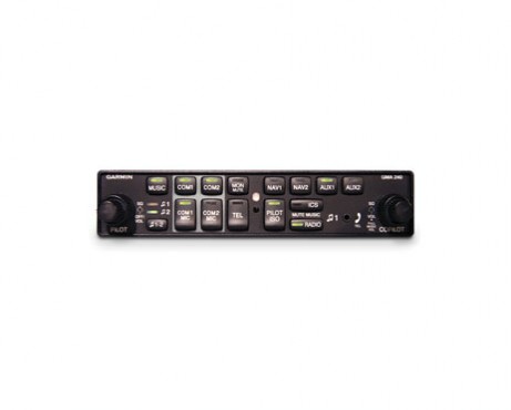 The innovative, reliable GMA 240 comes with full audio panel capabilities. It includes a 4 place stereo intercom system and support for 2 stereo music inputs. It supports dual COM, NAV and AUX audio inputs. In addition, 3 unswitched audio alert inputs are provided for connection to external warning tones. The GMA 240 has a full-duplex telephone interface with intercom isolation for private telephone calls by the pilot or multi-party calls with crew and passengers.