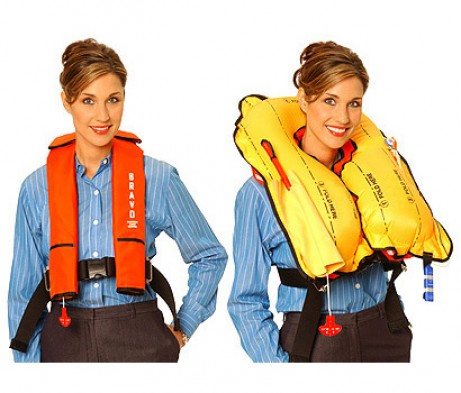 This continuous wear, yoke style life vest is ideal for helicopter pilots or anyone flying long distances over open water. The Bravo's compact, lightweight design includes a 2-inch, extra wide, waist strap for comfort and security. Equipped with water-activated light, retro-reflective tape and a whistle. Optional storage pouches attach to the waist strap to hold signal kit or PLB, ELT or EPIRB. Easy fold lines for repackaging.