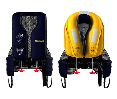The Titan-XF Life Preserver is a manually inflatable life preserver designed for wear by passengers and crew aboard an aircraft during flight over water. While in flight, the Titan-XF is worn deflated and folded to a compact size to provide maximum comfort and mobility for the wearer. When fully inflated, the Titan-XF provides 35 lbs. of buoyancy to help the wearer stay afloat while in the water.